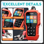 The VdiagTool BT500 is a powerful 6V/12V/24V battery tester and system analyzer, capable of testing batteries from 5 to 3000 CCA. Designed for a wide range of vehicles — from cars and motorcycles to boats and trucks — it's your go-to tool for reliable battery health analysis, starting system checks, and alternator testing.