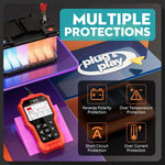 Your safety is our priority. The BT500 digital battery analyzer tester features 5-in-1 protection against common risks like reverse polarity and short circuits. Encased in shock-resistant ABS body with an anti-slip grip, the car battery tester is designed for use in tight engine bay and messy garage. Its high-quality clips ensure a secure connection, giving you peace of mind with every test. Plus, with support for 12 languages, it accommodates diverse users.