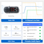 Generate professional diagnostic reports that can be saved or shared in seconds. Export data in PDF or CSV formats with timestamps, making it easy to print, email, or store reports for technician review, warranty claims, or service history records.