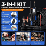 V200 Pro Upgrade Kit is an automotive power circuit probe tester that covers all major circuit tests, including circuit open test, wire tracing, AC/DC voltage test, diode test, resistance test, polarity test, continuity test, ground test, component activation, signal circuit test, as well as relay, fuse, and trailer light testing and more. It helps you quickly locate open circuits, broken wires, trace wiring, and detect short circuits. The included 30-piece back probe set makes testing easier, faster, and more efficient.
